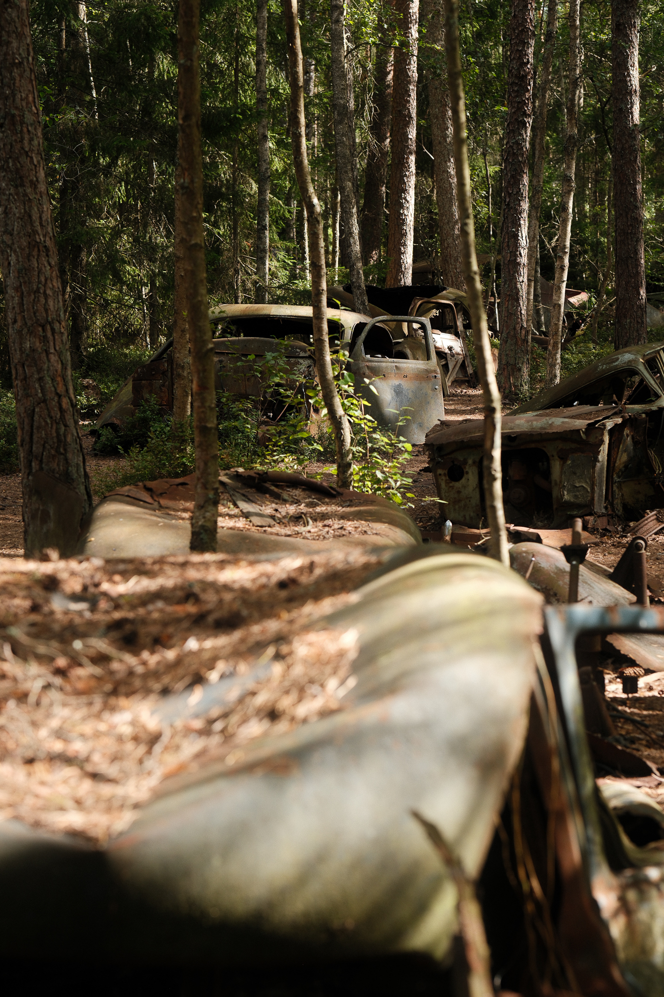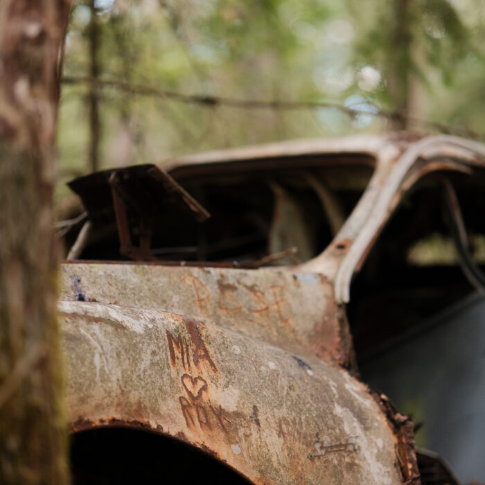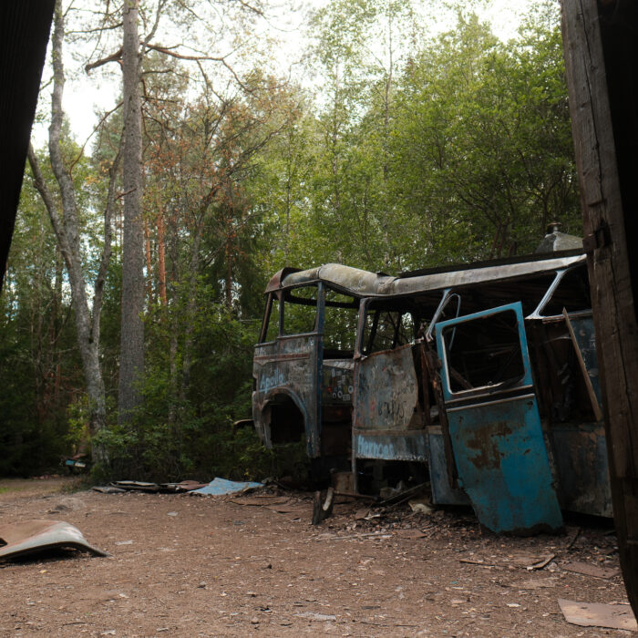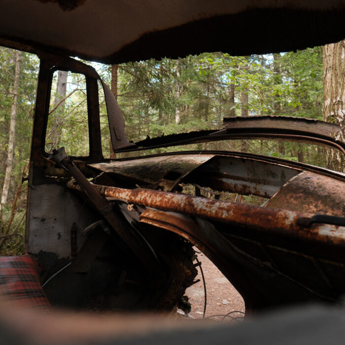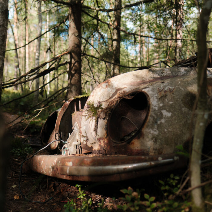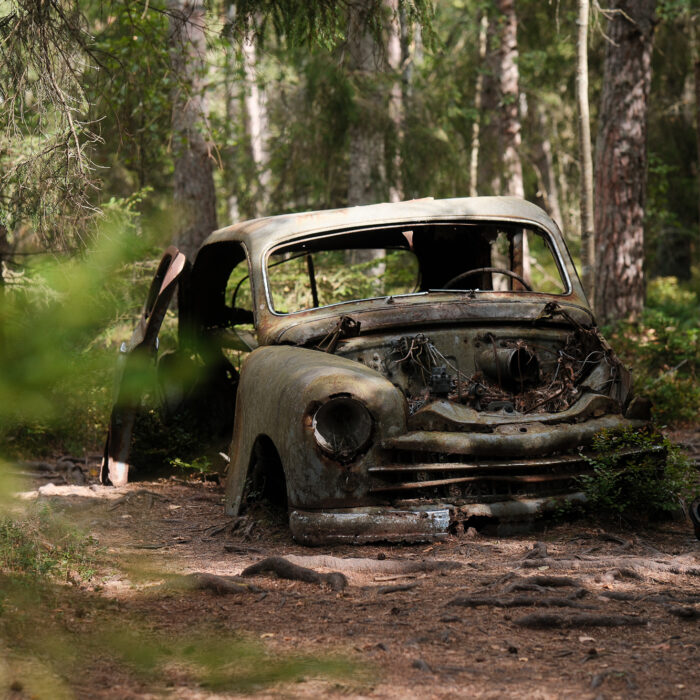 I visited Bilkyrkogården Kyrkö Mosse (“The Car Cemetery of Kyrkö Mosse”) this August, during a road trip through southern Sweden. It wasn’t planned as a major stop—just one of those places you mark on the map because it looks odd enough to be interesting. But the moment I stepped out of the van and walked into the forest, I realized this wasn’t just another curious detour. It’s a place where time has its own logic, where everything is slowly collapsing but somehow still alive.