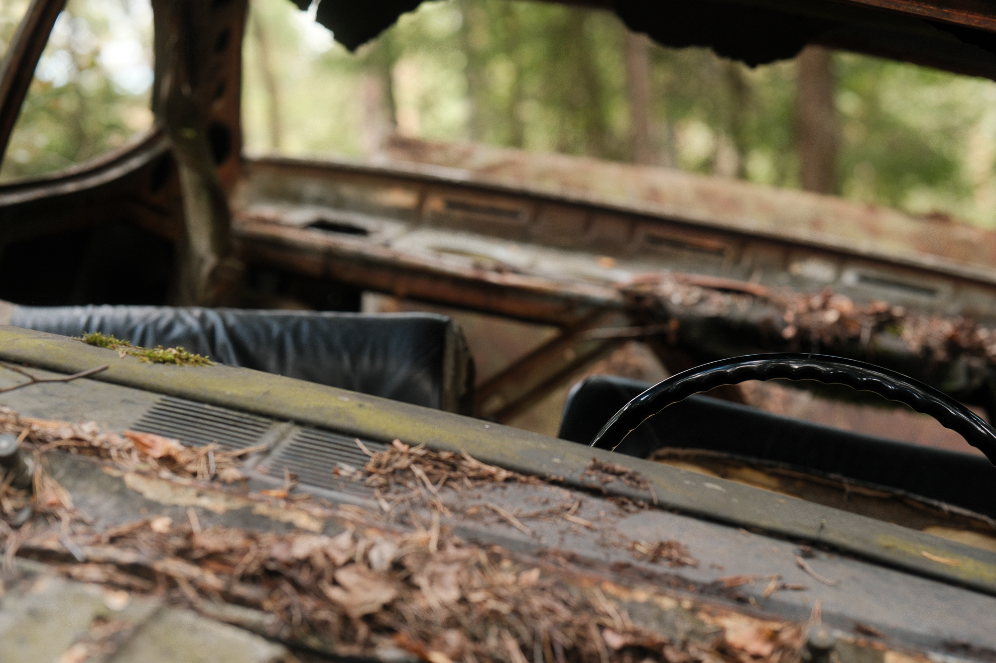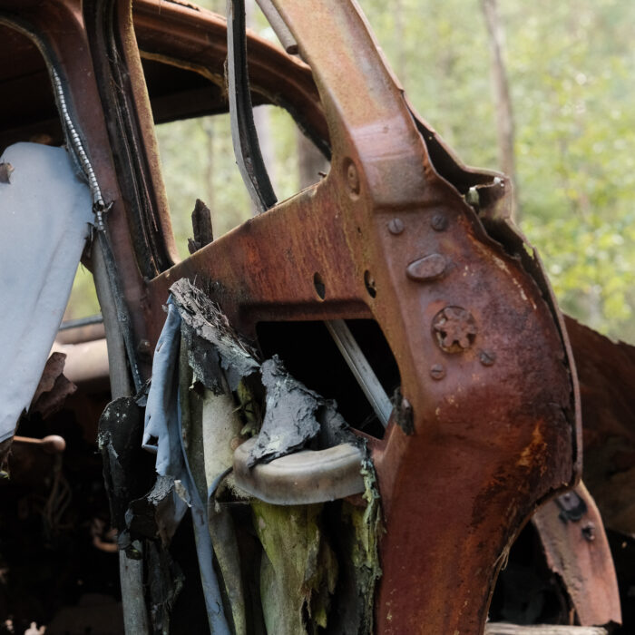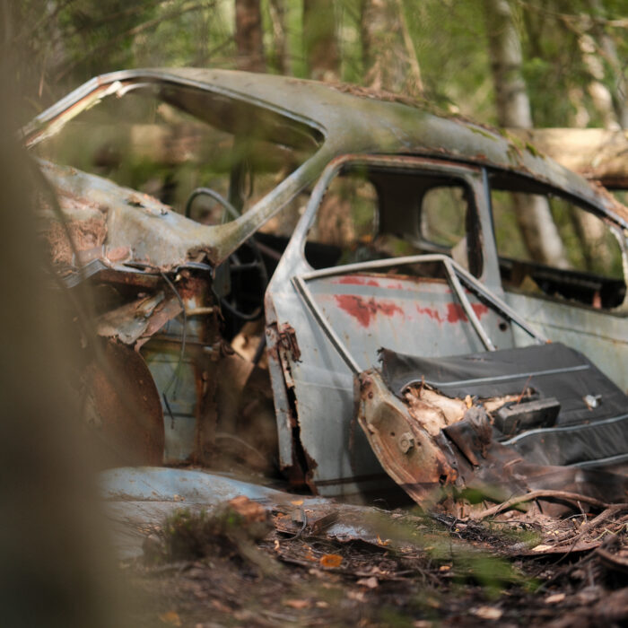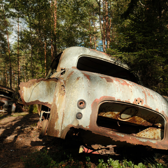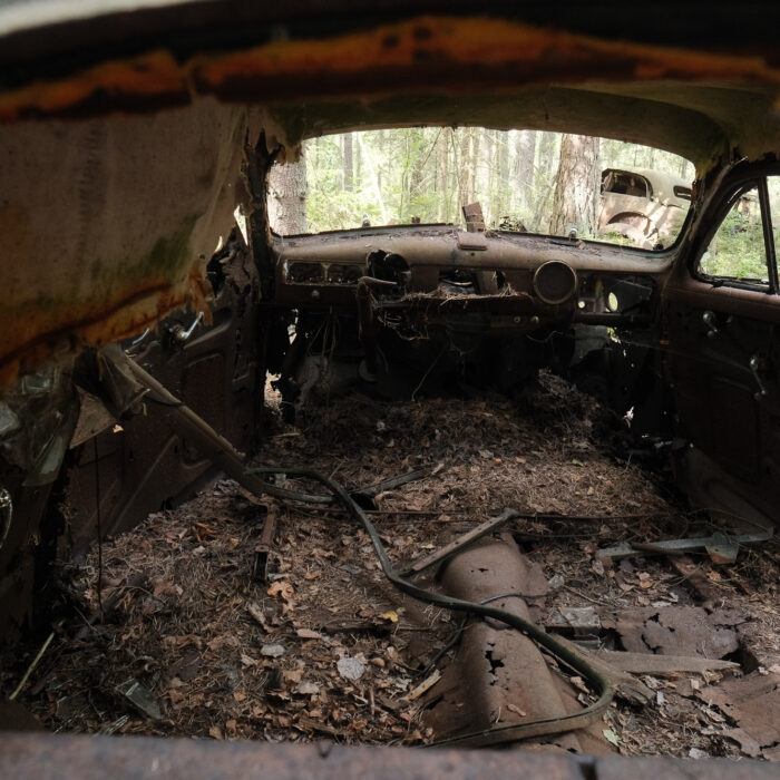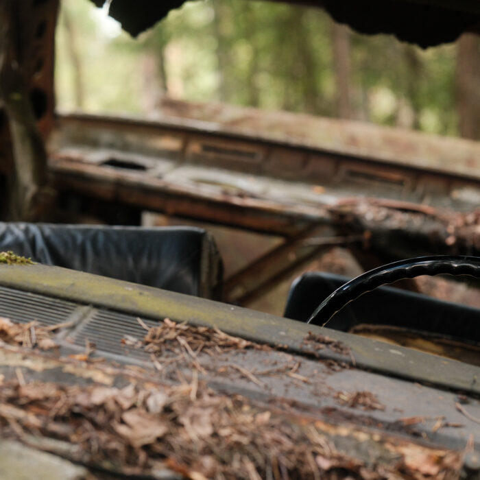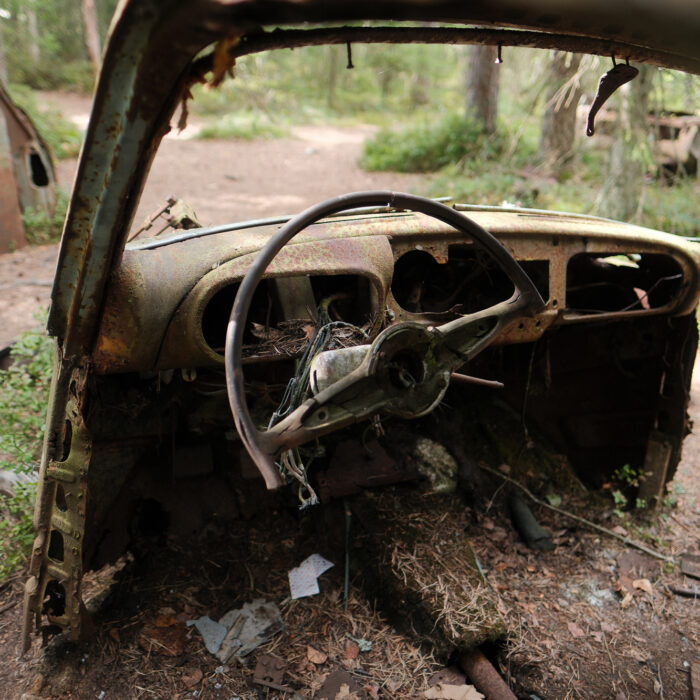 I visited Bilkyrkogården Kyrkö Mosse (“The Car Cemetery of Kyrkö Mosse”) this August, during a road trip through southern Sweden. It wasn’t planned as a major stop—just one of those places you mark on the map because it looks odd enough to be interesting. But the moment I stepped out of the van and walked into the forest, I realized this wasn’t just another curious detour. It’s a place where time has its own logic, where everything is slowly collapsing but somehow still alive.