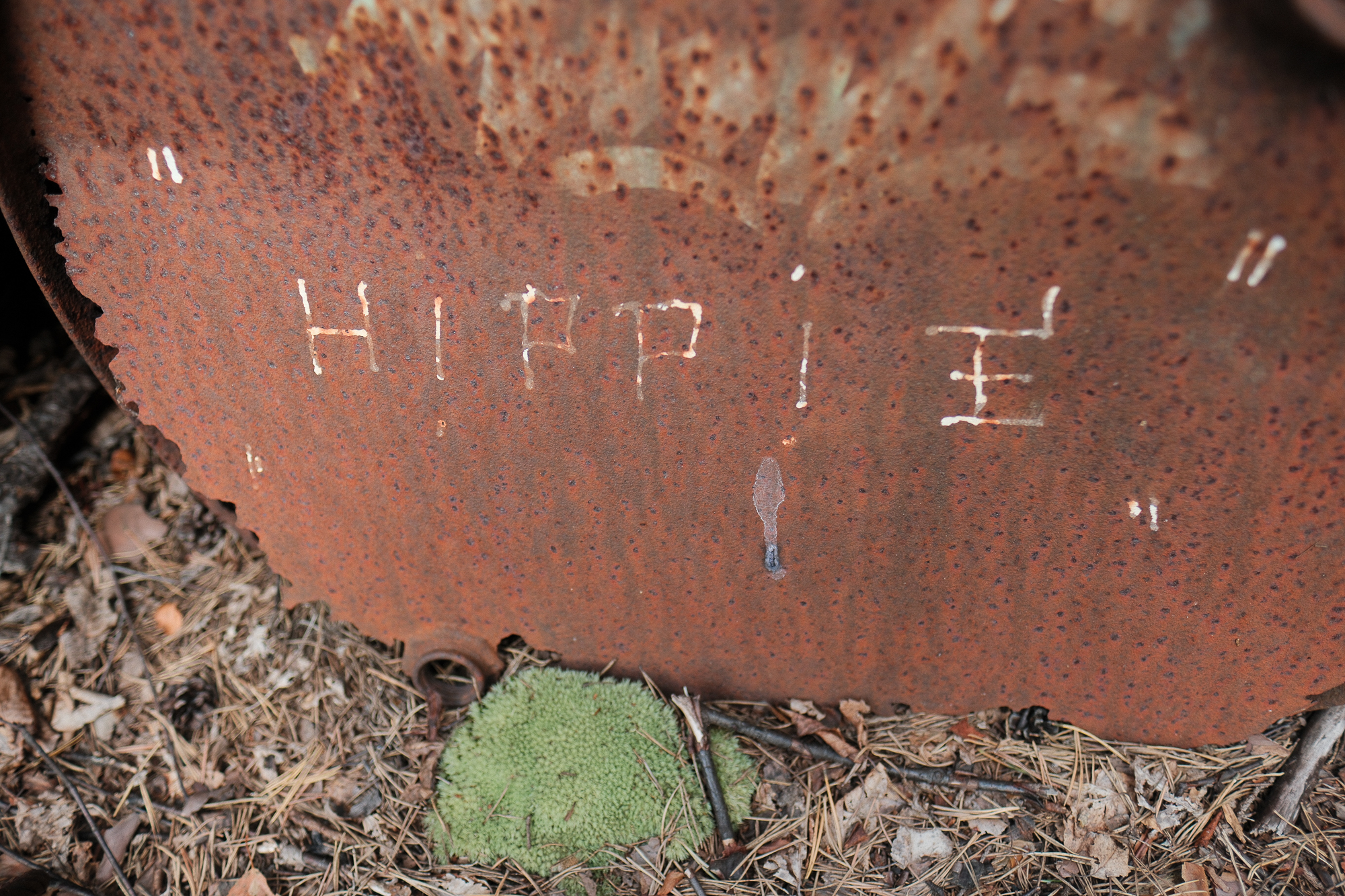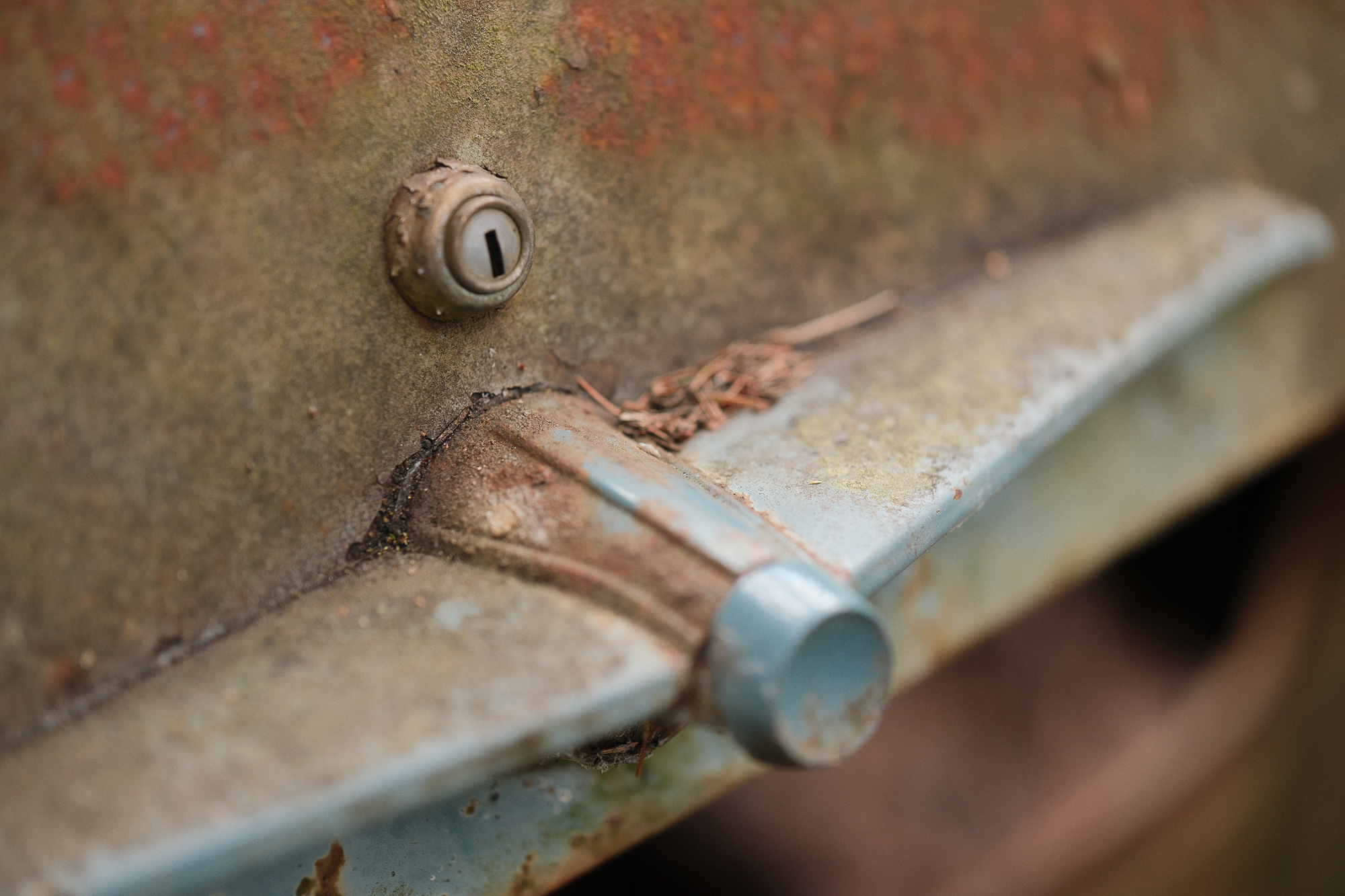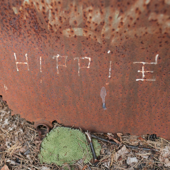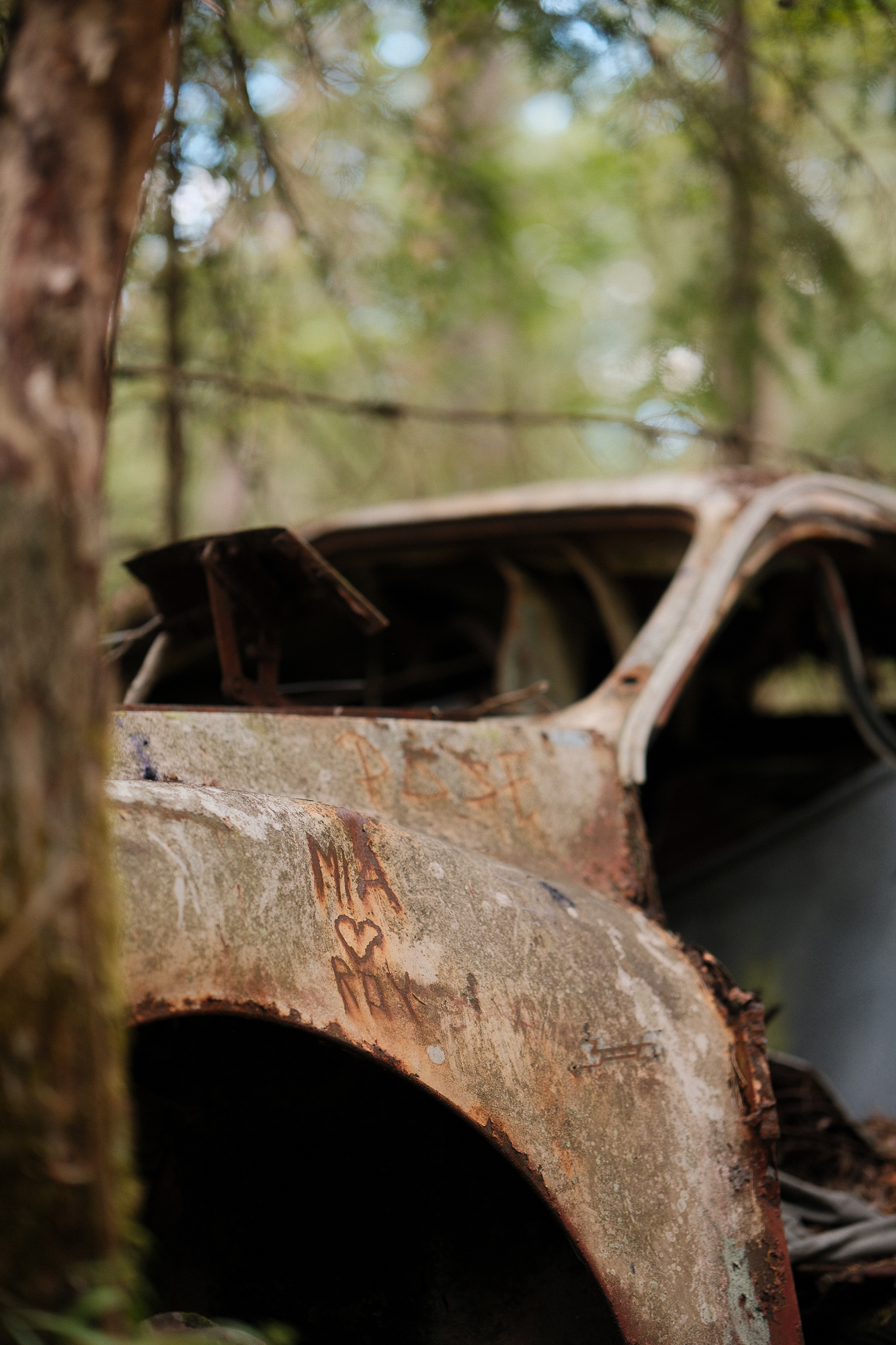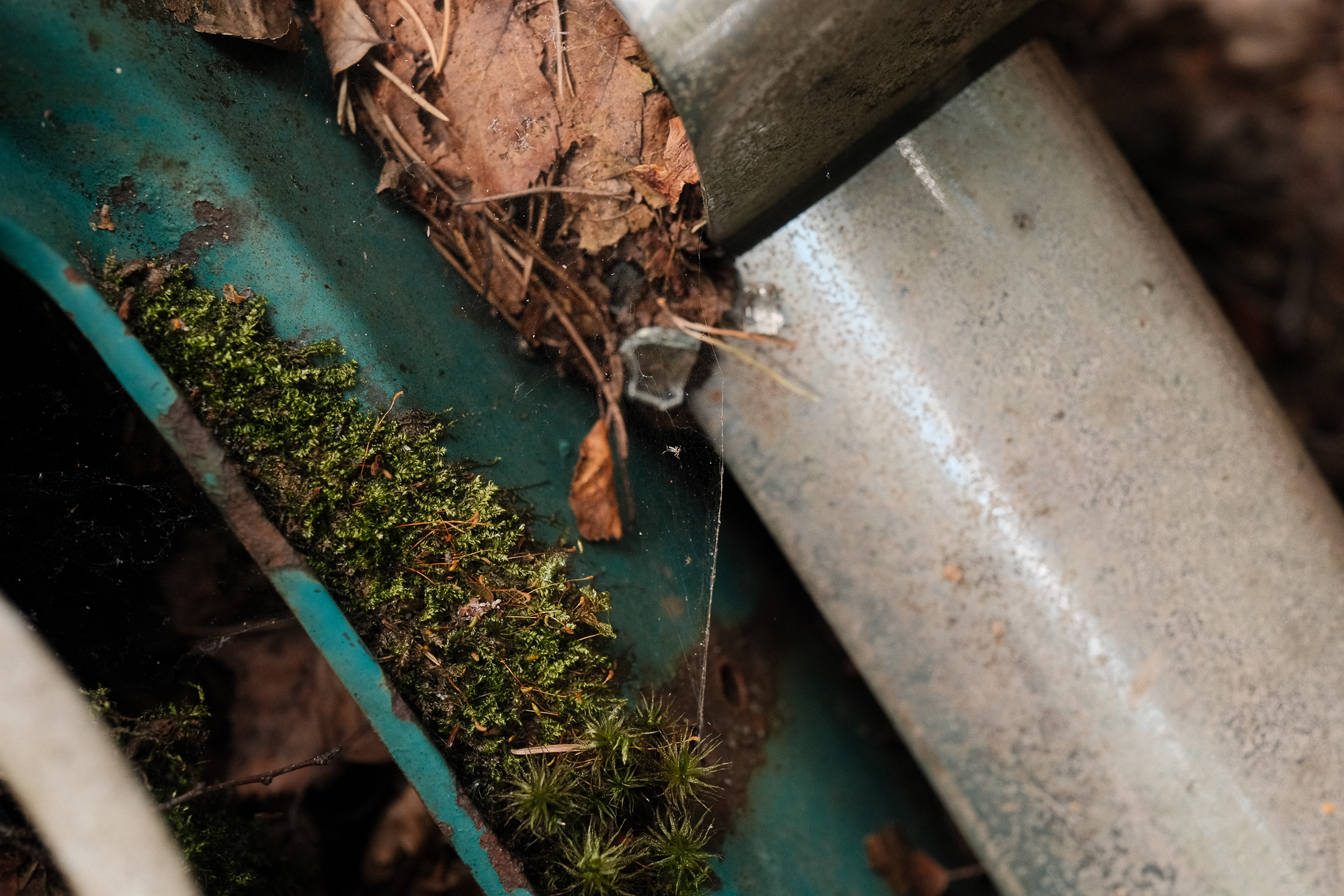 All the photos from this visit are straight out of camera. No editing, no corrections, no digital cleaning. Kyrkö Mosse doesn’t need embellishment. The colours are already there: the deep browns of rust, the saturated greens of the moss, the soft blues and reds from paint that refuses to die. Light filters through the trees in a way that feels natural and honest.