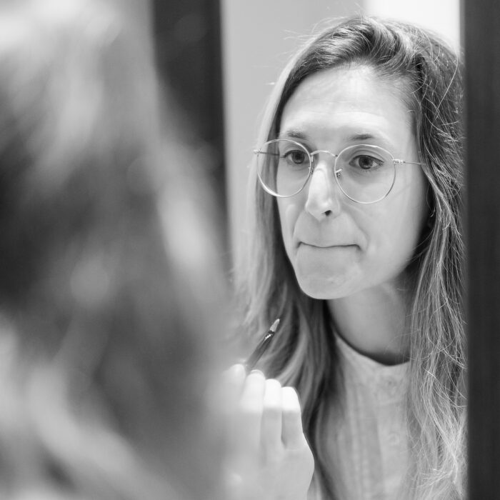 After reviewing the photos together a few days later, sitting in front of the screen, we realized what we wanted to refine: how to control reflections, where to catch the softest daylight, and how to let her expression speak naturally, without posing. That reflection process — visual and personal — made the second session feel precise and honest.